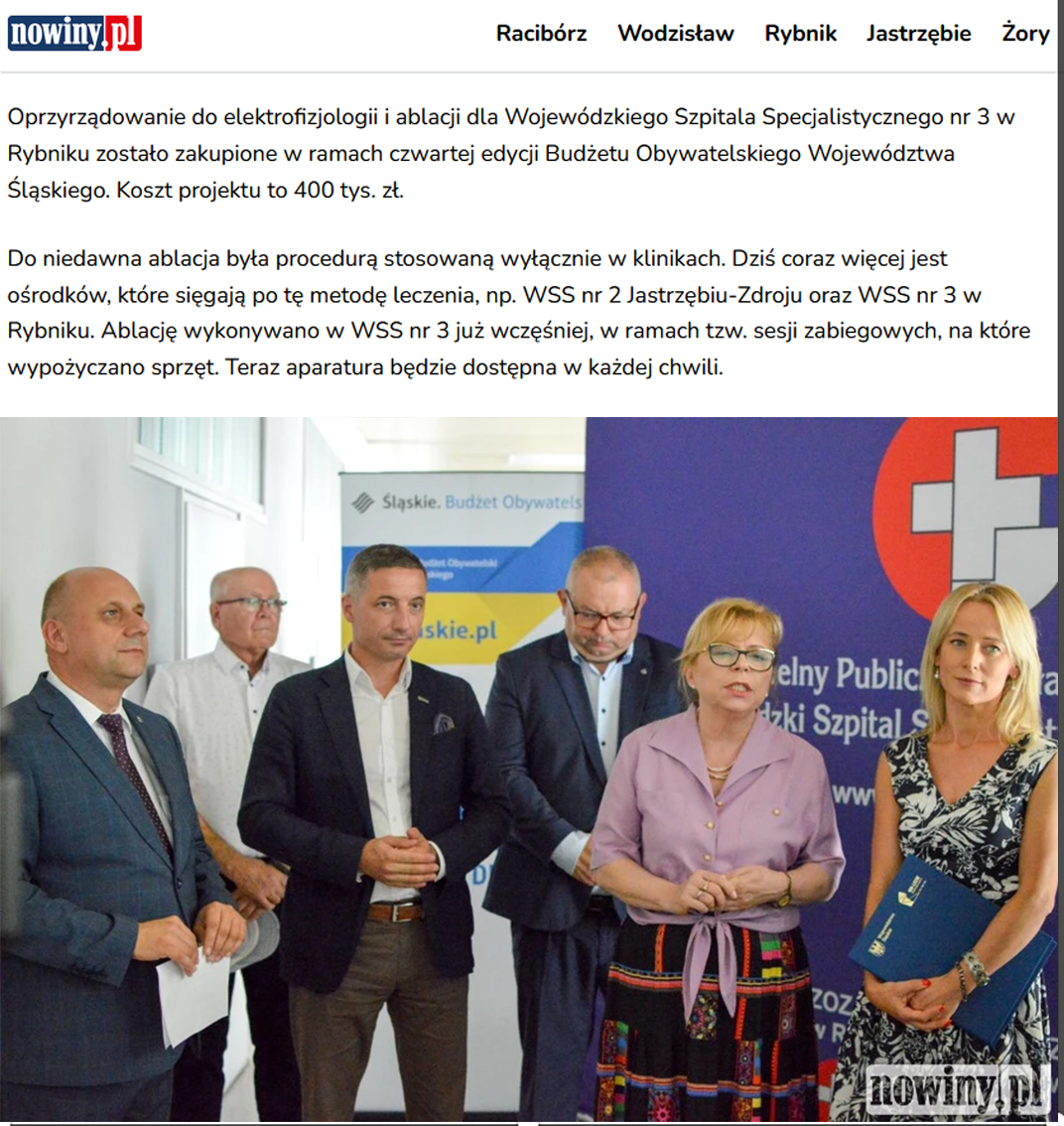 22 sierpnia w Wojewódzkim Szpitalu Specjalistycznym nr 3 w Rybniku wzięłam udział w konferencji prasowej, której temat związany był z realizacją projektu zwiększającego dostępność ablacji – metody leczenia arytmii serca.