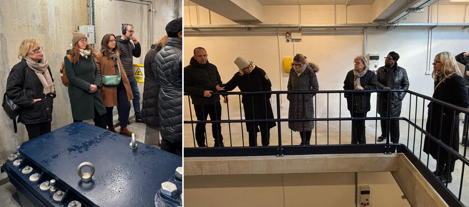 Oprowadzający tłumaczyli, jak działa system retencji i jak przebiega nadzór nad urządzeniami w czasie wysokich stanów wód. Rozmowy dotyczyły także doświadczeń z ostatnich lat i działań utrzymaniowych, które zapewniają sprawne funkcjonowanie instalacji.
